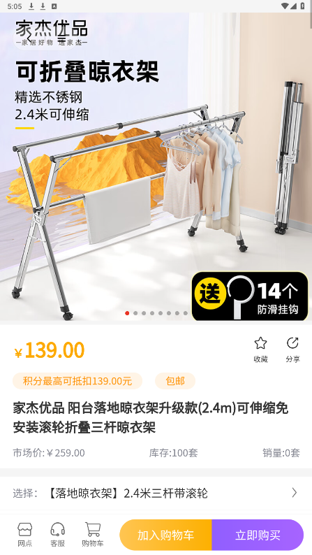 选择产品颜色,大小,数量,点击立即购买