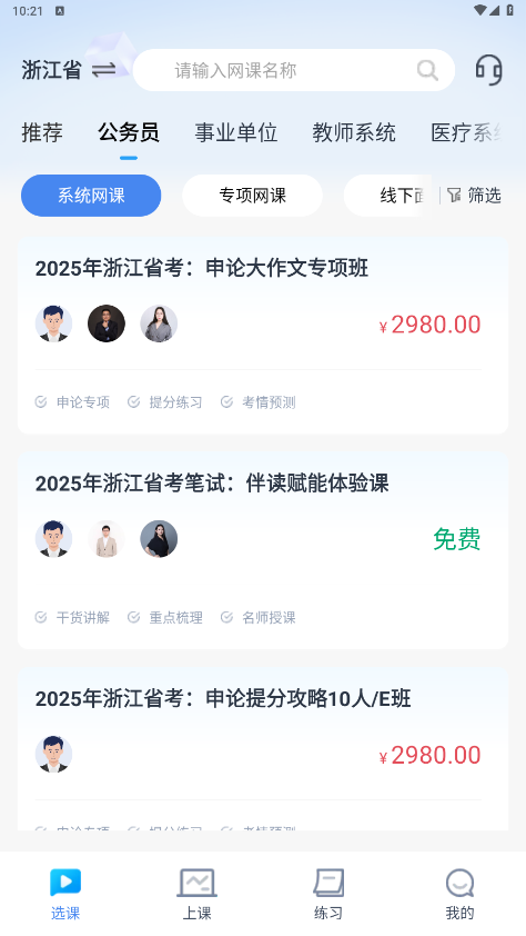 覆盖公考等多个类型考试,行测申论面试等各大类知识考点,每道题都搭配详细解析,针对各大类考点搭配直播课程。