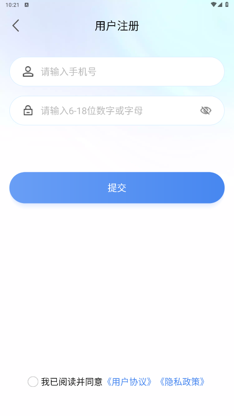输入手机号,密码,勾选用户协议和隐私政策,点击提交