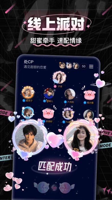 处cp手机版能帮助年轻人一起来语音聊天交友场景,每天有1700万次cp速配,上百对情侣成功奔现,上千名高颜值声优主播在线组cp。无论你是声控、颜控,我们希望通过cp分配帮你轻松找到心仪的另一半,在百万好声音中,遇见你的暖心陪伴!通过游戏、连麦聊天、互动,快速提升你们的感情,开启一场甜甜的恋爱之旅。