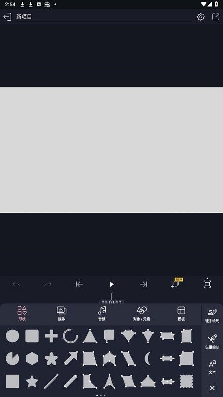 5、可以添加形状、文本、媒体(手机上的图片和音乐还有视频)、图纸、元素;