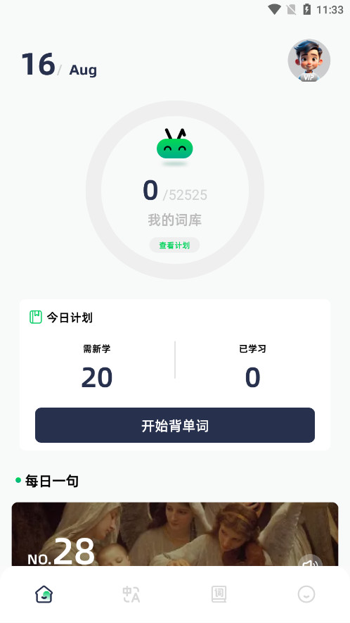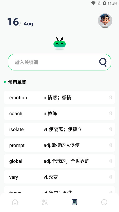 2、简单学习背单词,每次成长积累,根据发音学习,了解音标部分的组成,查看单词释义,帮助你加强印象更进一步的理解完全。