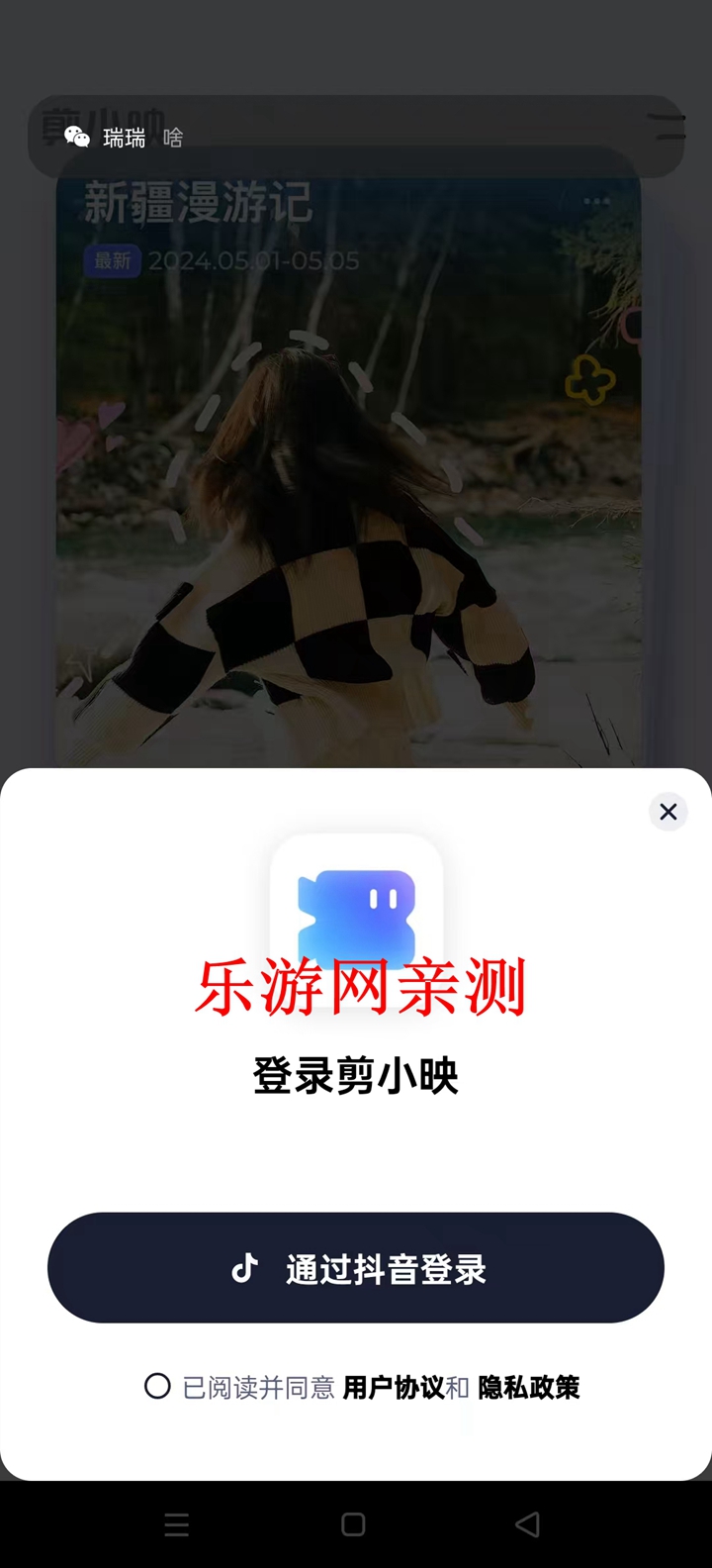 3、勾选已阅读并同意用户协议和隐私政策,点击通过抖音登录,跳转至抖音授权即可登录