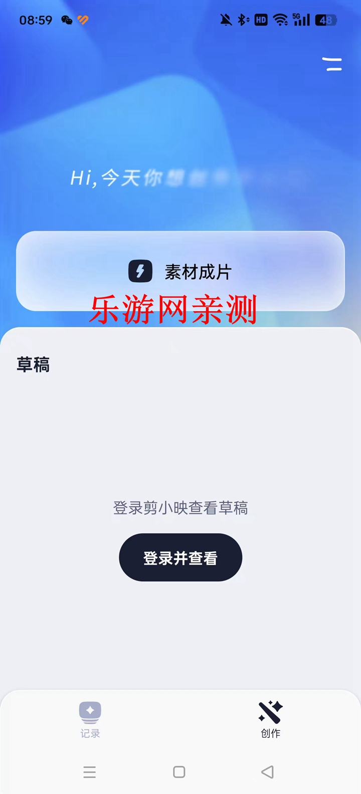 2、进入记录首页后点击登录并成片