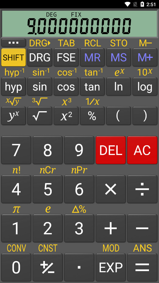 它具有所有标准的科学功能以及历史、记忆、单位转换和常数。