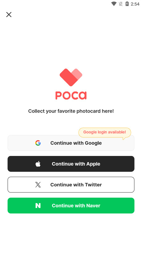 2、使用谷歌、苹果ID、X或是Naver程序注册登录进入。