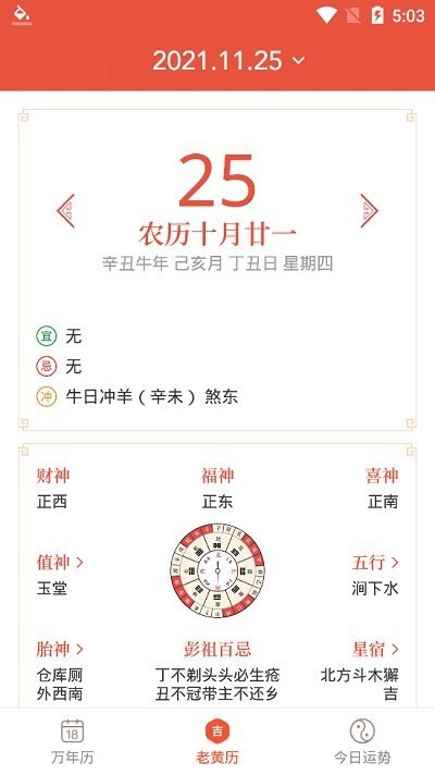 全面的老黄历信息,详细罗列黄历宜忌、黄道吉日等,同时还附有黄历现代文解读,帮助您轻松掌握