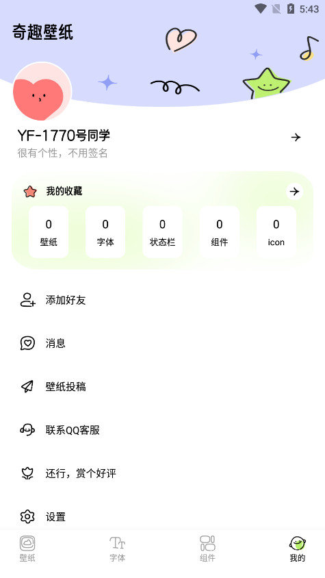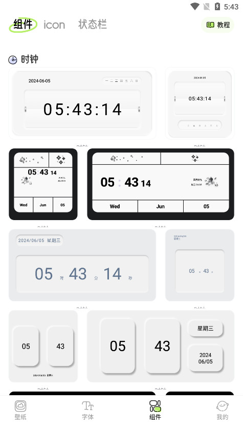 奇趣壁纸组件还提供了状态栏主题,让你可以更换手机桌面顶部的系统状态栏的样,如果你觉得状态栏太单调或者太占空间,你可以用奇趣壁纸来给它换一套新衣服。
