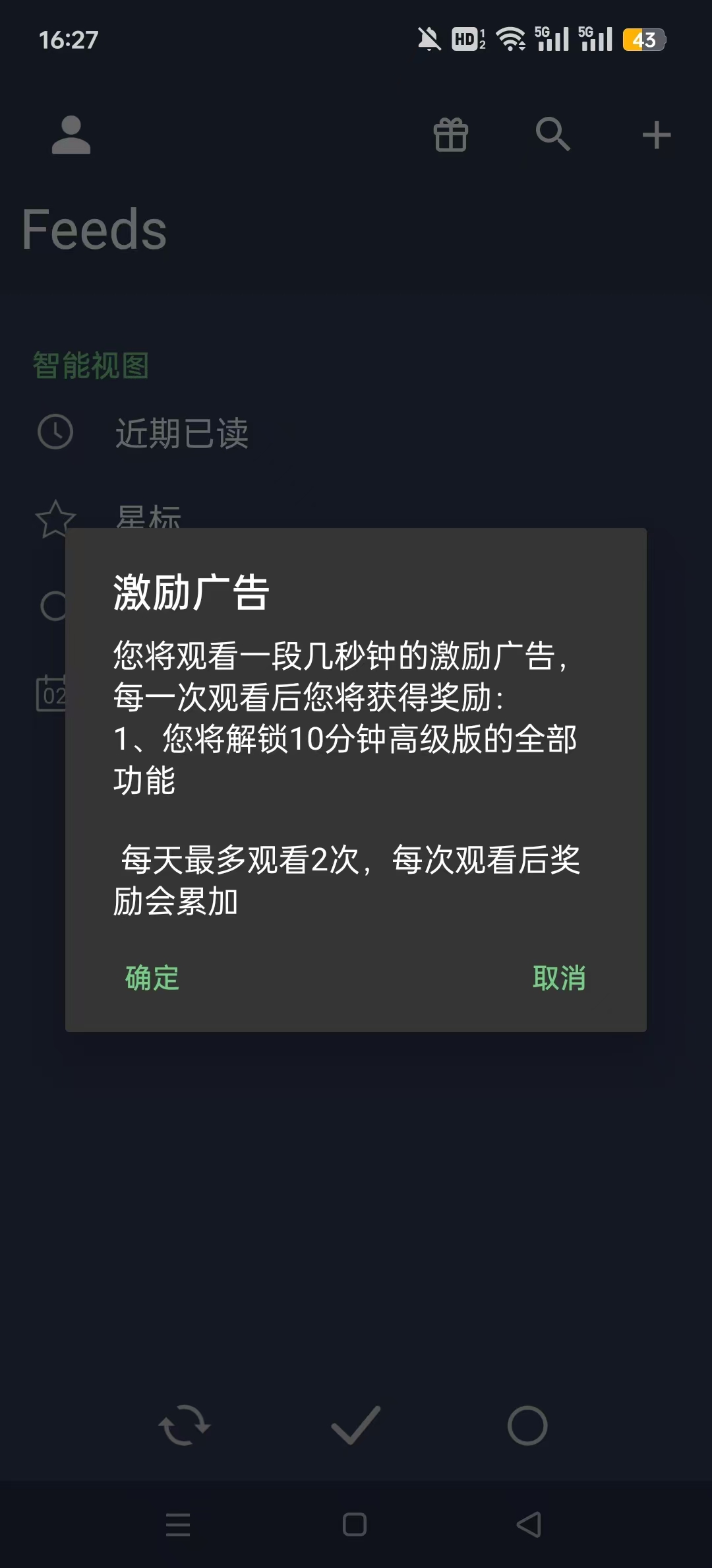 4、若没有开通会员的用户,可以通过观看广告的方式获得激励,解锁高级版权限功能。