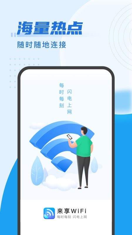 来享wifi 官方版可以快速的连接wifi,自动连接信号最好的热点,这样不管是看电视、玩游戏还是刷视频都不用担心会卡顿了,而且还可以实时管理你的手机网络信息,还能够帮助大家有效隔绝各种病毒和木马的攻击,非常的实用,有需要的用户赶快来下载吧!