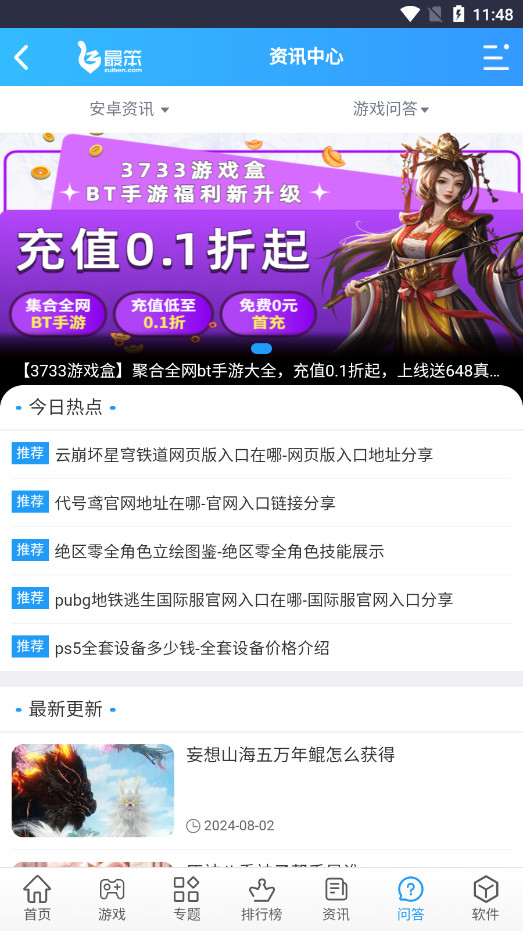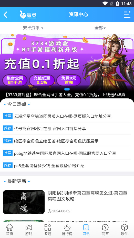 5、在【资讯】版块,了解一些游戏相关的最新内容,包括一些常见的游戏攻略、官网最新公告消息等等。