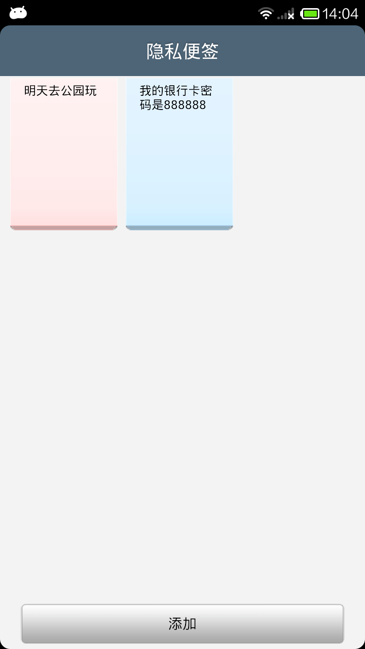 3.专门用来记录私密事情的便签记事应用。这个应用提供的记录功能一般的应用都有,无非就是增加了一个登陆密码功能,提高了便签的安全性和隐秘性,保证了用户的隐私。