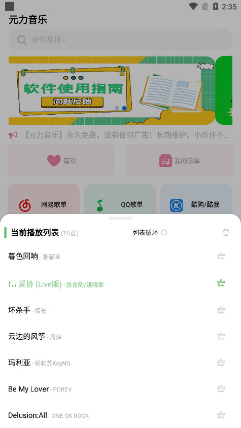 《元力音乐》是一个安卓手机端不错的音乐播放器,资源很多,而且支持歌单导入,支持无损音质下载等功能,这款软件上线不久但已经非常完善,自身已经集合了多个线路,拥有着极为强大的曲库,不管您是需要找经典的老歌还是追求时尚潮流,都可以一次性得到满足。