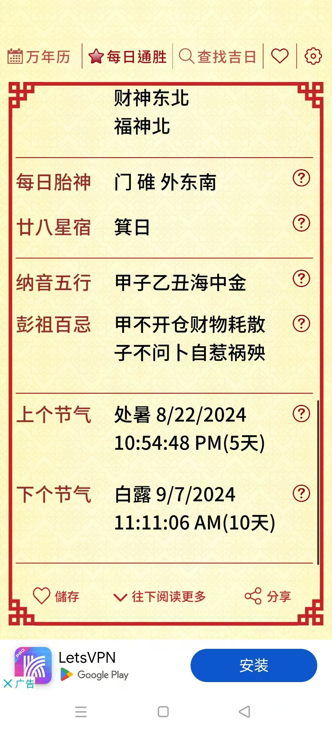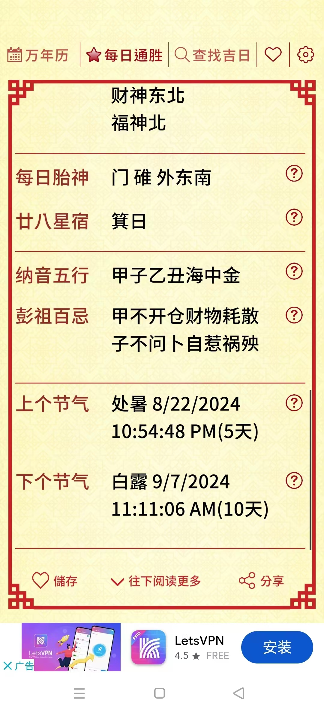 无论是冬至、大暑还是寒露等节气换算,搬屋结婚祭祀开市交易等生活重要事项,「择日通胜」都能为您提供最合适的吉日选择,助您轻松择日。