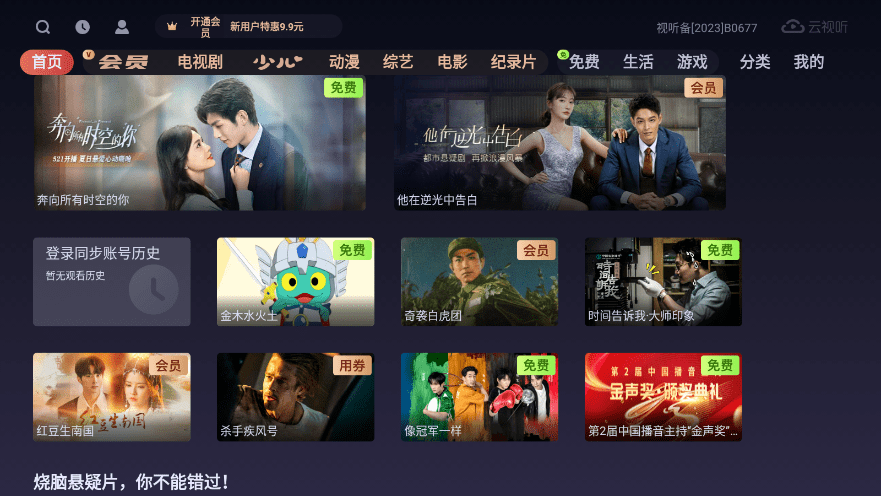 云视听悦厅tv版全面提升了大屏观影体验。请在符合国家相关规定的智能电视及盒子上安装。