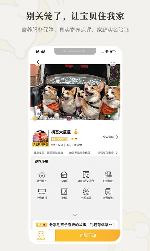 欢迎你来到「小狗在家」有爱的宠物家庭式寄养服务社区
