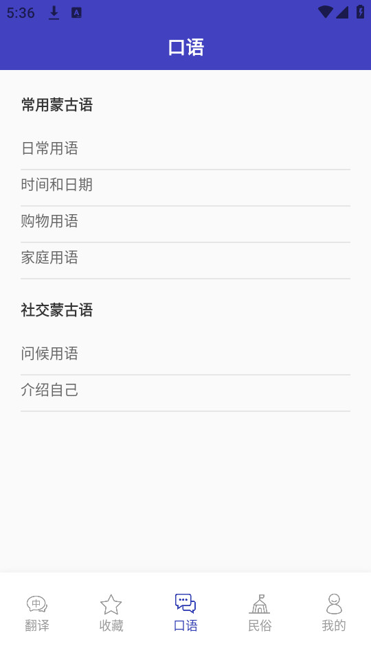 常用口语:精选日常口语以及各类常用词汇,助力快速掌握基础蒙语。