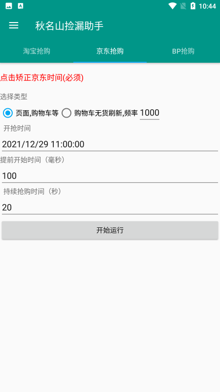 2:提前多少毫秒开始根据自己的手机的情况调试,一般130-200左右就可以了。这个可以简单理解为代码开始执行点击后,及系统发送请求到淘宝服务器的时间。和自己手机的处理速度关系最大。