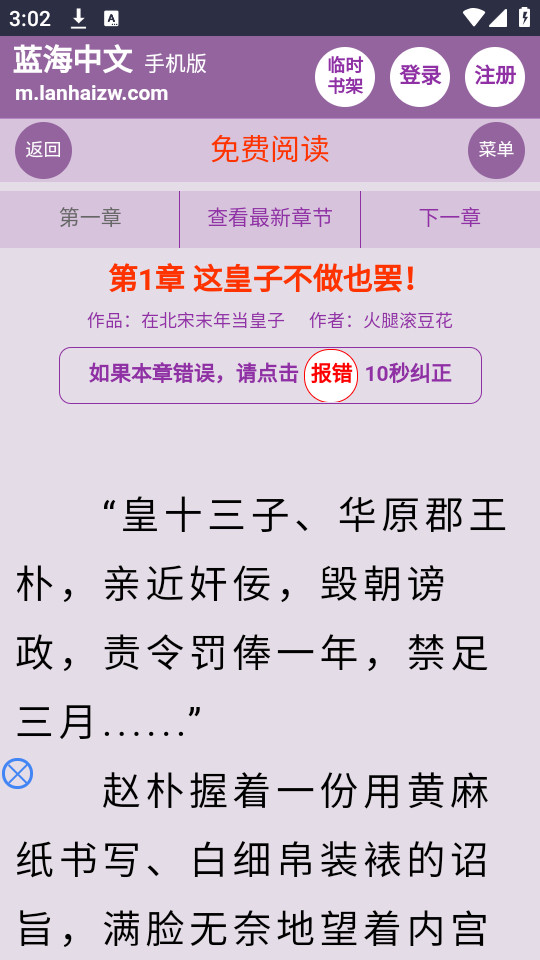 下载安装并打开蓝海搜书app,点击右上角注册