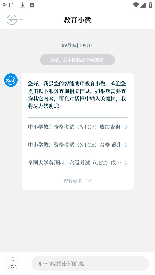 一款集信息发布、查询服务、实时互动等功能于一体的移动应用,具有高度的权威性和便捷性,是广大用户获取教育信息和办理教育政务服务的重要平台。积极探索利用人工智能、大数据算法等前沿技术,为用户提供全天候的在线答疑服务,用户可以在线咨询教育政策等方面的问题。用户可以在APP上参与直播活动,与最新最快最权威的教育信息实现24小时面对面交流。