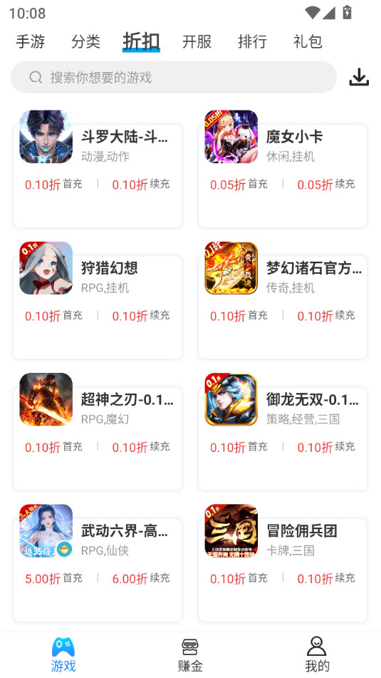4、搜索游戏:会有一个搜索的功能可以使用,能够在这个功能里搜素自己想要游玩的游戏尽情的体验。