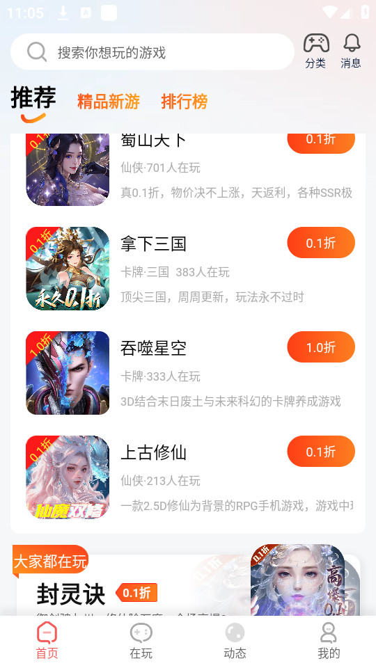 《自然游戏盒子》是一款非常实用的游戏盒子手机软件,汇集了众多手游,通过提供充值折扣、代金券、礼包等福利,让玩家能够以更优惠的价格享受游戏的乐趣。平台内置游戏社区,玩家可以在这里相互交流、分享游戏心得和攻略,以及参与各种与自然相关的活动或挑战。社区氛围友好,玩家之间可以相互帮助、共同进步。喜欢玩各种折扣游戏的朋友们可千万不要错过哦!