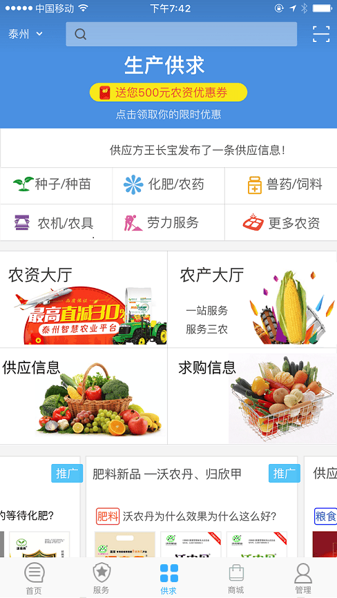 提供一站式农资供求服务,优质诚信农资供应商方可准入,通过平台为农民服务,净化农资市场,维护农民利益。根据平台农资交易数据,精准补贴,降低农民生产成本。