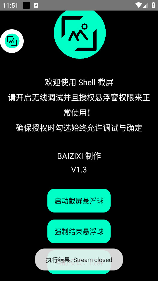 点击启动截屏悬浮球
