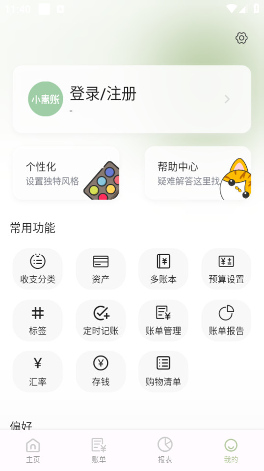 --设置功能提供了账户管理、消费与收入类别管理功能,可以根据习惯自定义账户与类别;