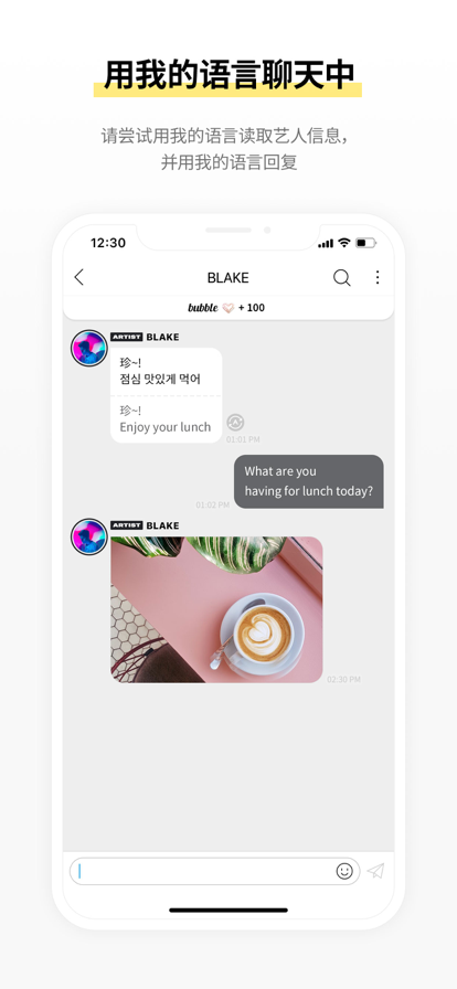 Bubble for LLOUD提供了多种便捷功能,如图片和视频发送、音频录制与发送、聊天室背景设置等。这些功能不仅丰富了粉丝与偶像之间的互动方式,还提升了用户的整体使用体验。此外,应用还支持多种语言切换,方便不同国家和地区的粉丝使用。