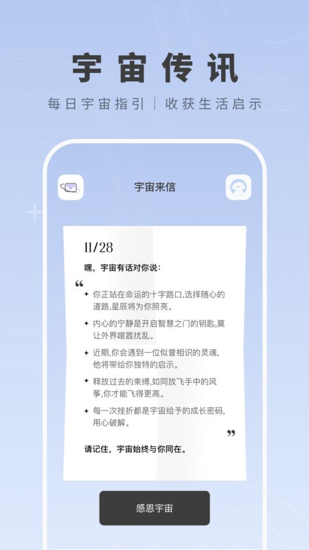 还提供了每日的宇宙传讯,进而可以让你获取宇宙的指引,收获更多的生活启示。