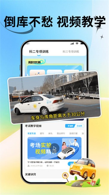 模拟考场 + 真人教练实拍视频,倒车入库、侧方停车等 5 大项目,每个点位、每个方向盘打多少度都手把手教,零基础也能看懂!