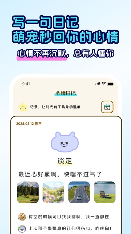 记录每天的心情,宠物们会给你送来暖心的回复,你的心情永远有回应;