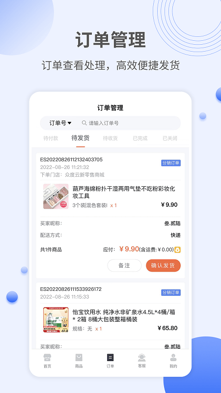 众度云商家app是一个很好用的店铺管理软件,软件中的功能可以很好的帮助用户处理各项工作。这里有功能全面的工作台,可以方便大家自由编辑各种不同类型的商品,及时和客户进行沟通交流,还能查看异常订单。多种实用性强的功能,帮助大家更好的管理好自己的店铺。