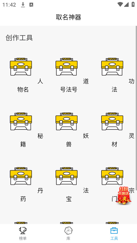 5.【工具】页面还能够进行取名,比如选择【人物名】