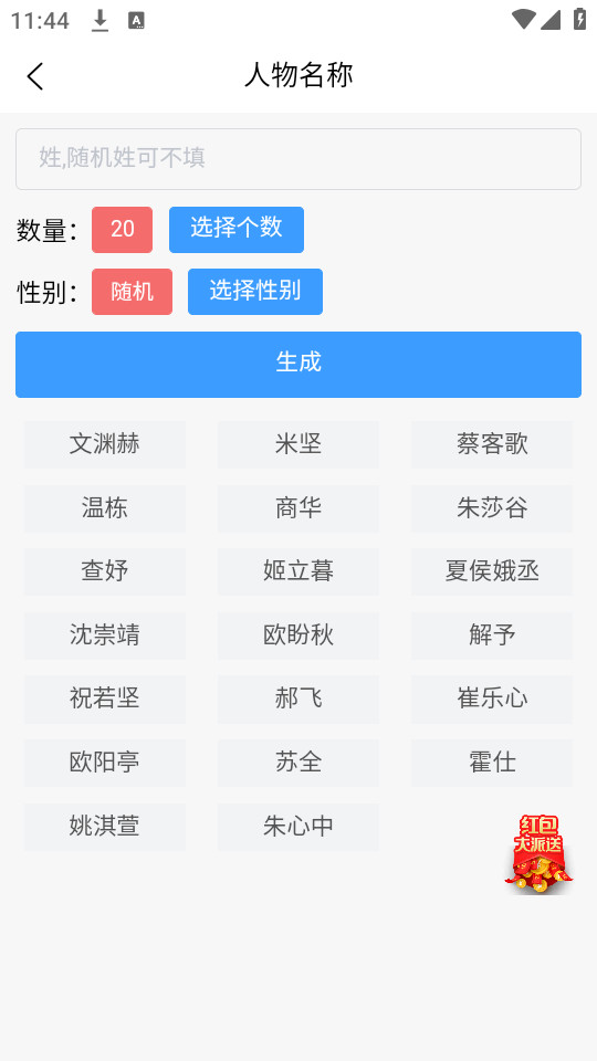 7.还可以【选择性别】或者可以根据你的需求来填写姓,不填写的话就是随机,点击【生成】