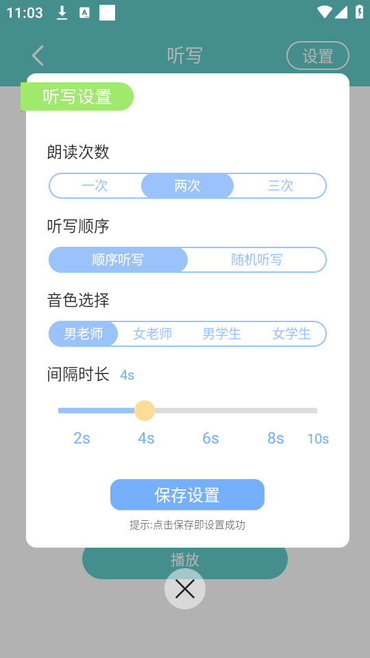 【语文听写】:多种发音供你选择,写字时间不够用?设置间隔时长来解决!循环朗读,词语联想!宝宝听写练字不用愁。