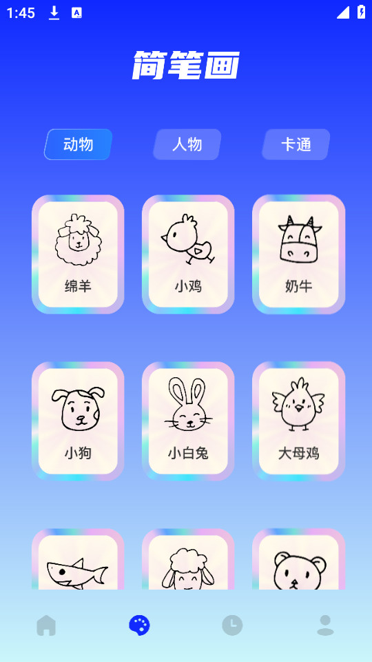 6.点击下方的第二栏,还可以选择各种不同分类的简笔画