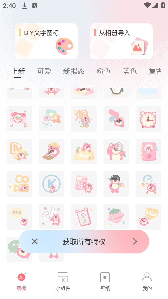 8.还能够自己选择图片创建图片,或者文字diy图标,点击图标首页上方即可