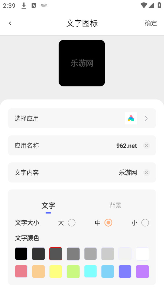 9.比如diy文字图标设定,选择好应用,同时设定好文字内容和应用名称,点击【确定】就可以了