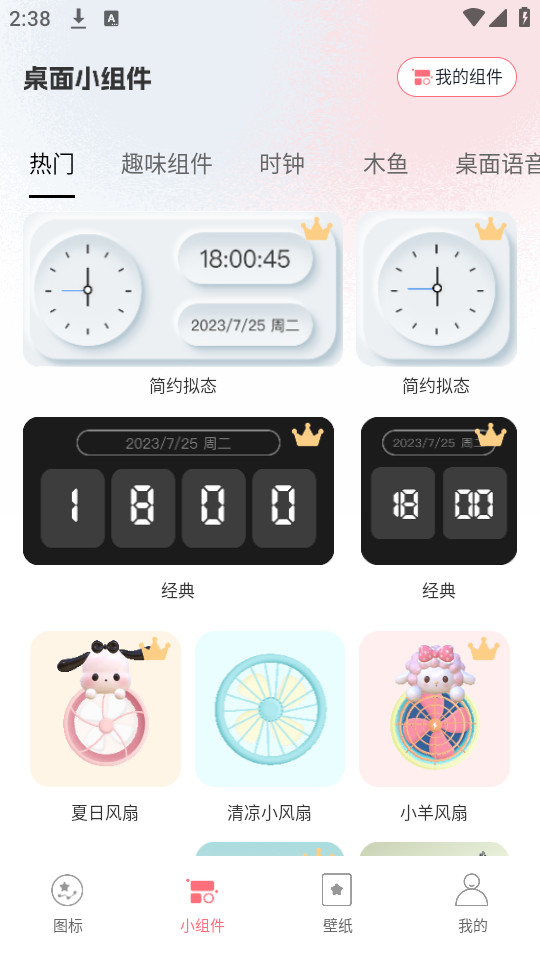 1.除了换图标的功能以外,小组件界面可以选择各种不同的小组件,根据上方的分类直接点击进行选择即可