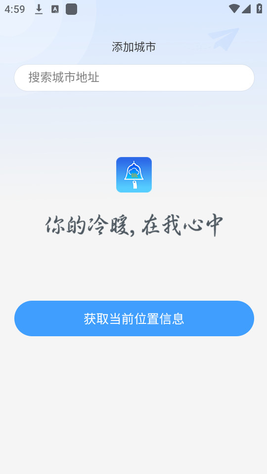 5.首页左边的小房子是家的位置,中间是目前所在的地方,右边的小标志是学校,点击右上角的【+】添加不同的城市信息