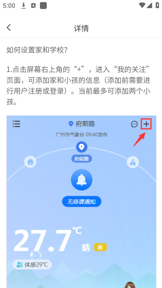 10.点击之后就可以直接进入首页,查看具体的天气,以及是否有停课通知
