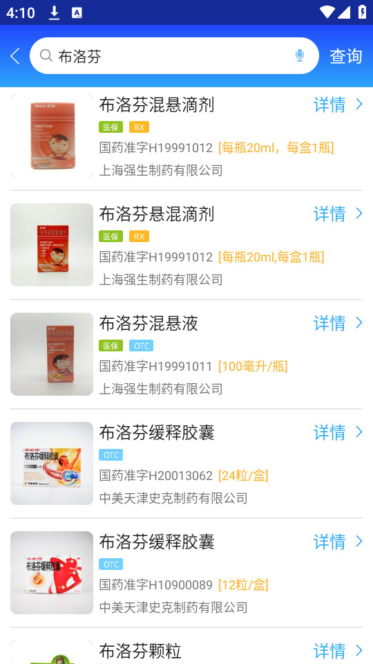 2.点击“在售药品”一栏,进入药品列表,可查看药品说明书、药品包装盒外观等详情;