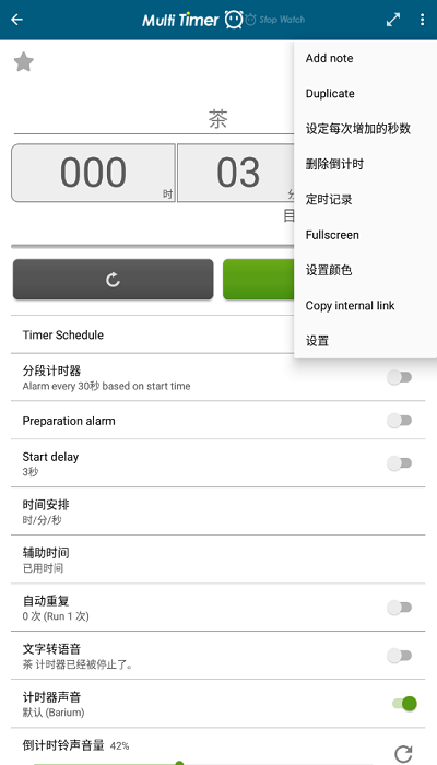 表中表:Multi Timer 多工计时器计时过程中可以设置小的提醒间隔。例如,在计时快到时先提个醒。