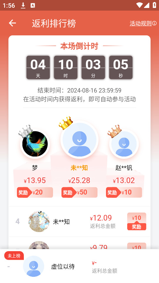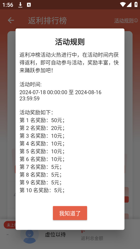 7.在返利中心就能够查看自己目前正在参加的返利活动