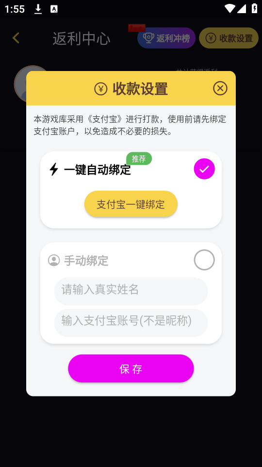 6.支持支付宝一键进行绑定,还能够手动输入账号进行绑定