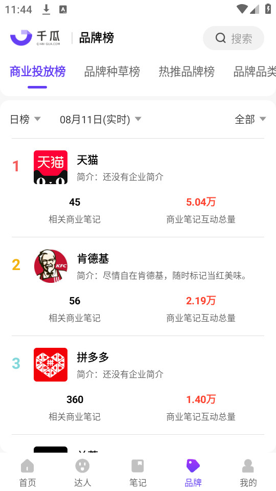 千瓜数据提供小红书多维榜单、达人画像、竞品投放、营销结案、舆情监测等多重数据驱动解决方案,帮助企业驱动业务决策和品牌营销。