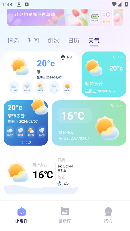 2.小组件界面提供了各种好用的小组件,直接点击你喜欢的小组件