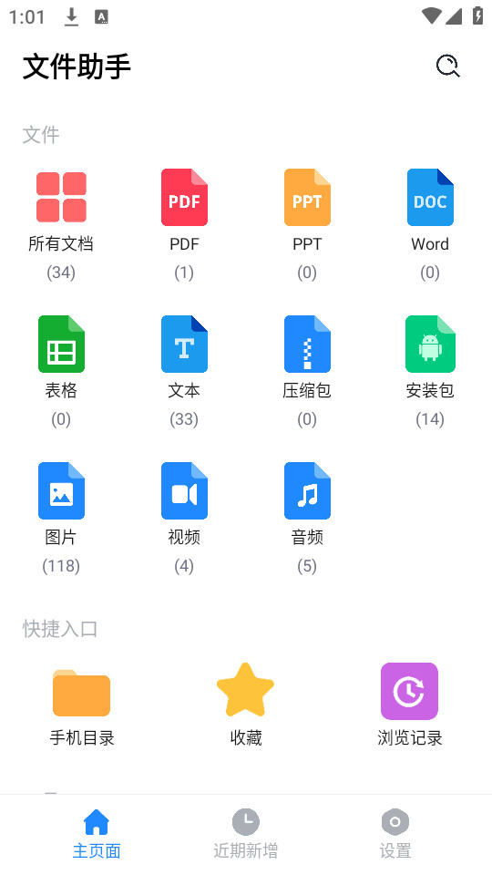 在全文件管理器首页就能够直接以分类的方式直观的查看文件了,直接点击就能够打开并且进行管理